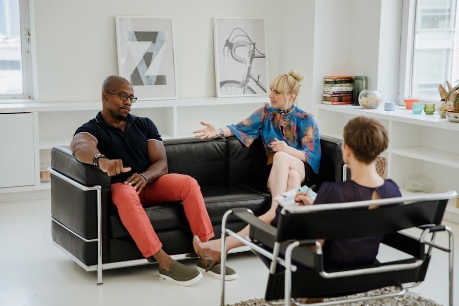 A structured workbook offers a clear roadmap for couples to address relationship challenges systematically. It provides a cost-effective alternative to traditional therapy, allowing couples to work at their own pace. The guided exercises and activities promote accountability and consistency, ensuring both partners are actively engaged. By following a structured format, couples can identify patterns, improve communication, and build emotional intimacy. The workbook also serves as a valuable resource for reflection and growth, helping couples develop lifelong relationship skills. Its accessibility in PDF format makes it convenient for use at home or with a therapist, fostering meaningful progress over time.